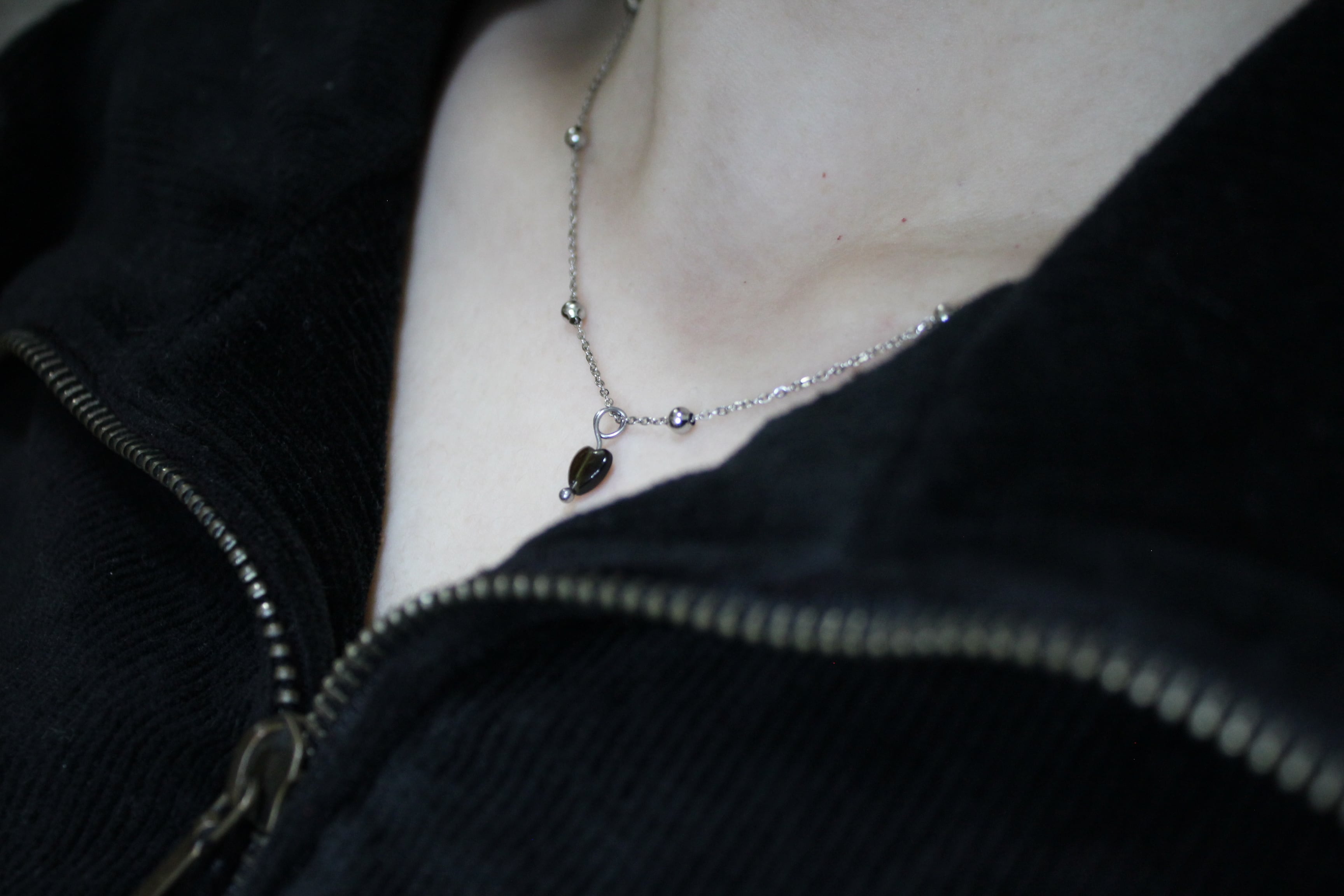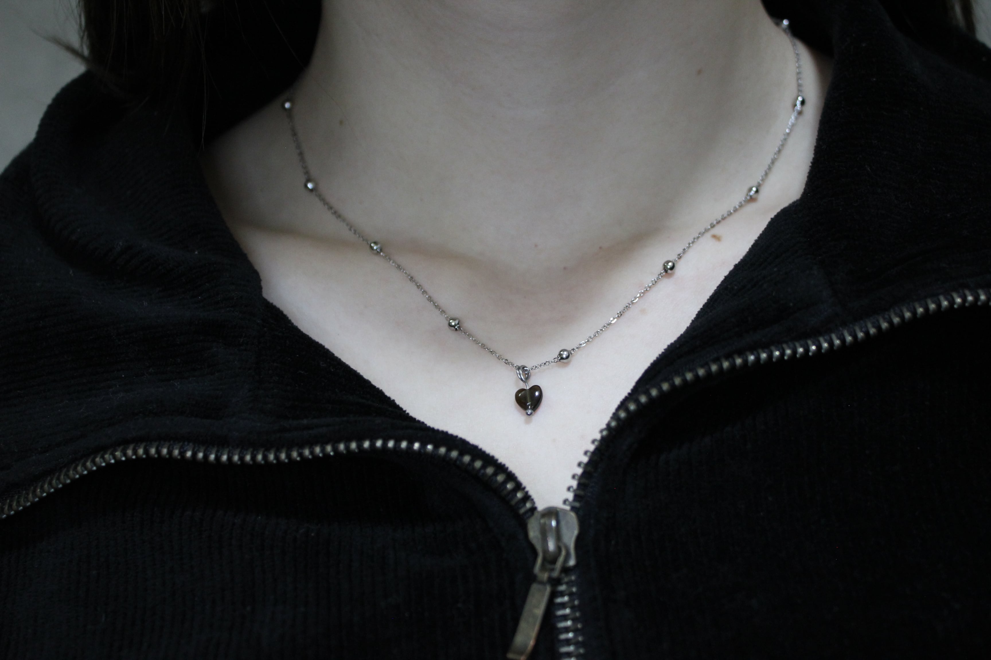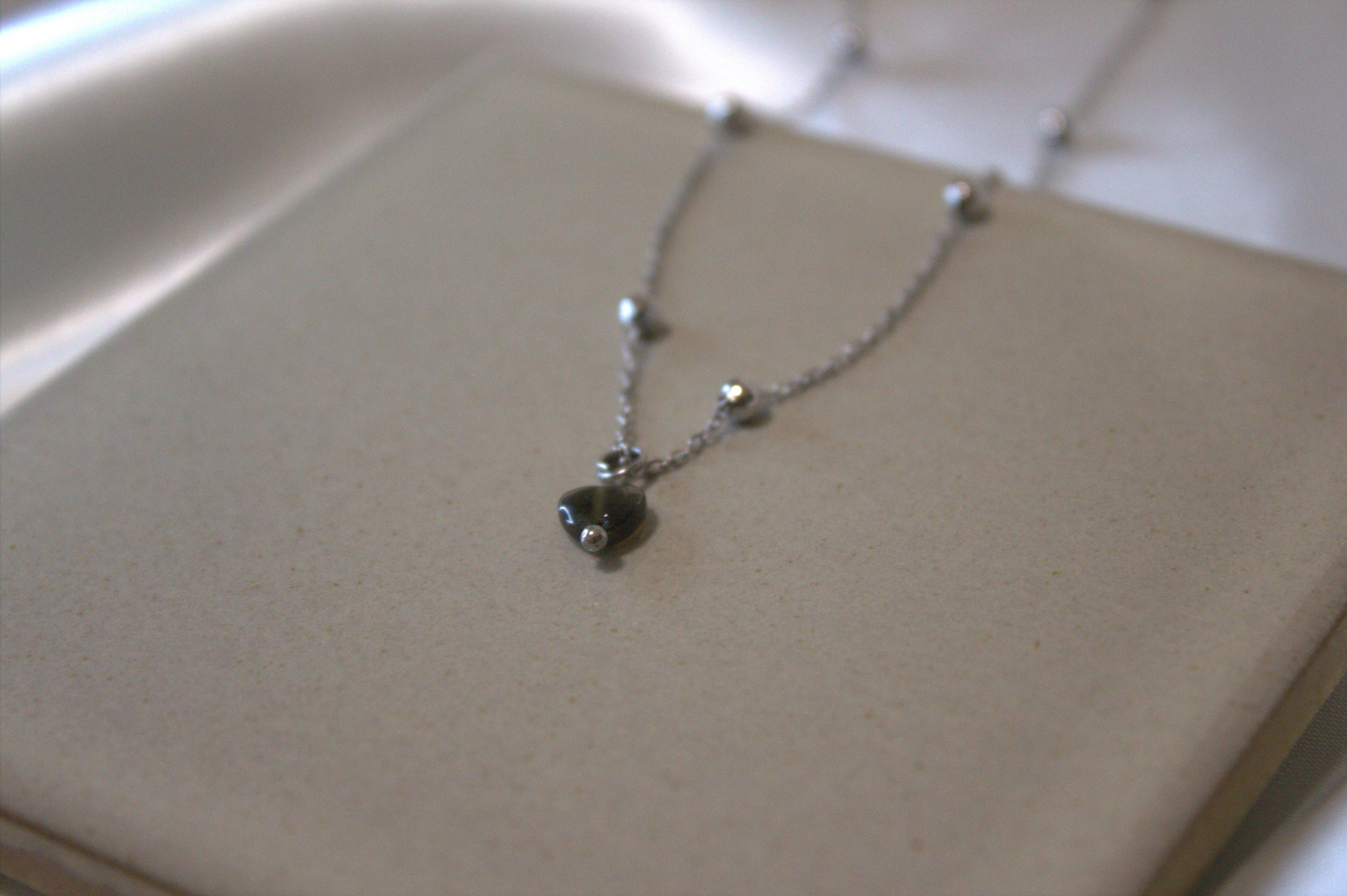黒曜石 Heart silver ball neckless