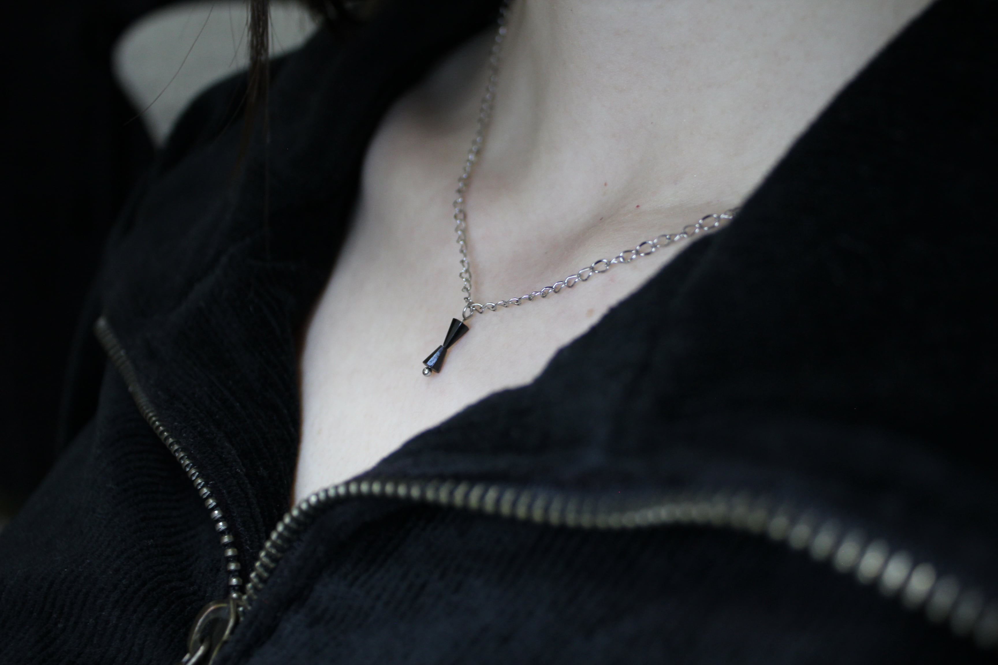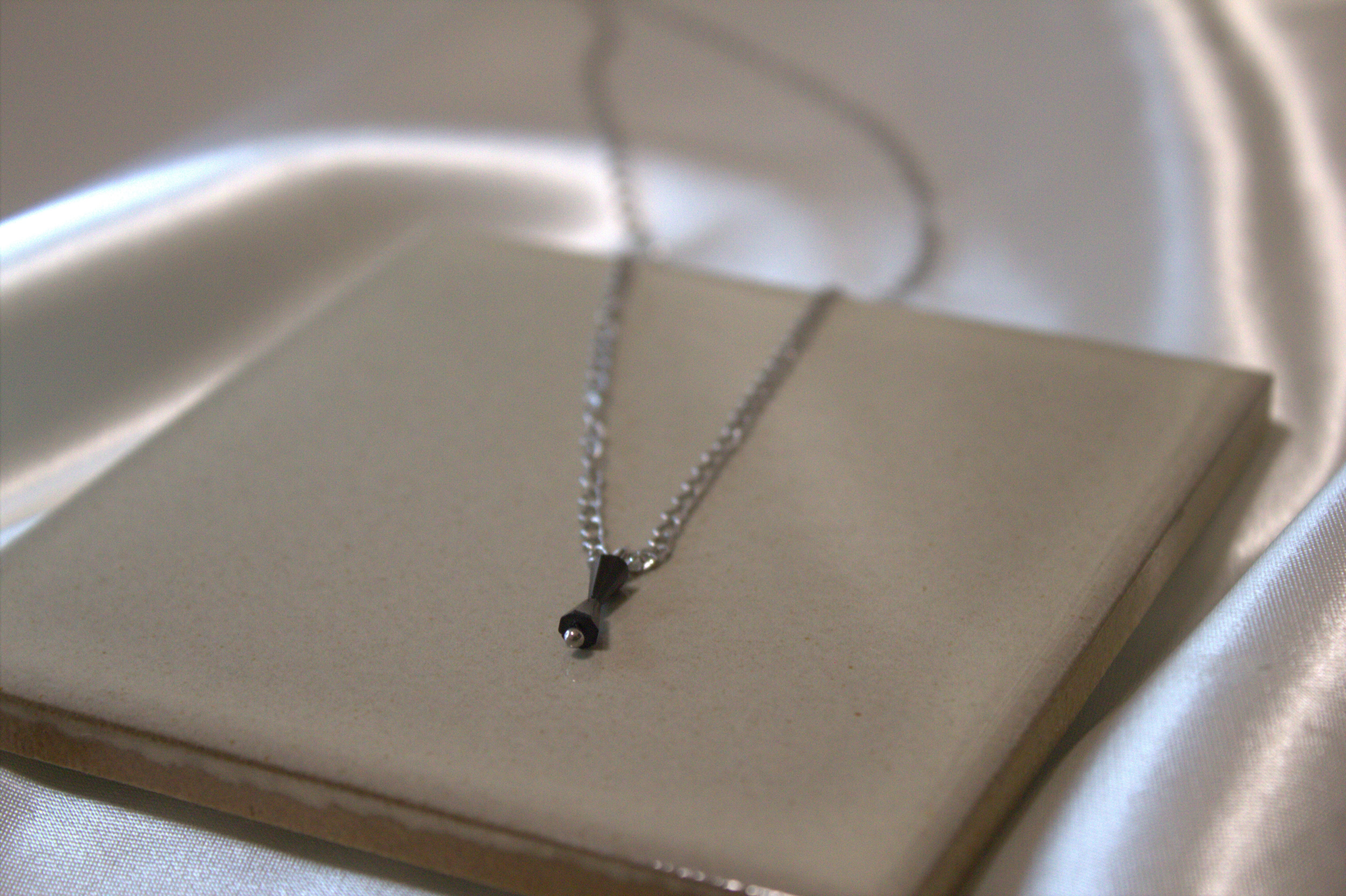 ブラックスピネル(尖晶石)を使用したドロップカットネックレス。