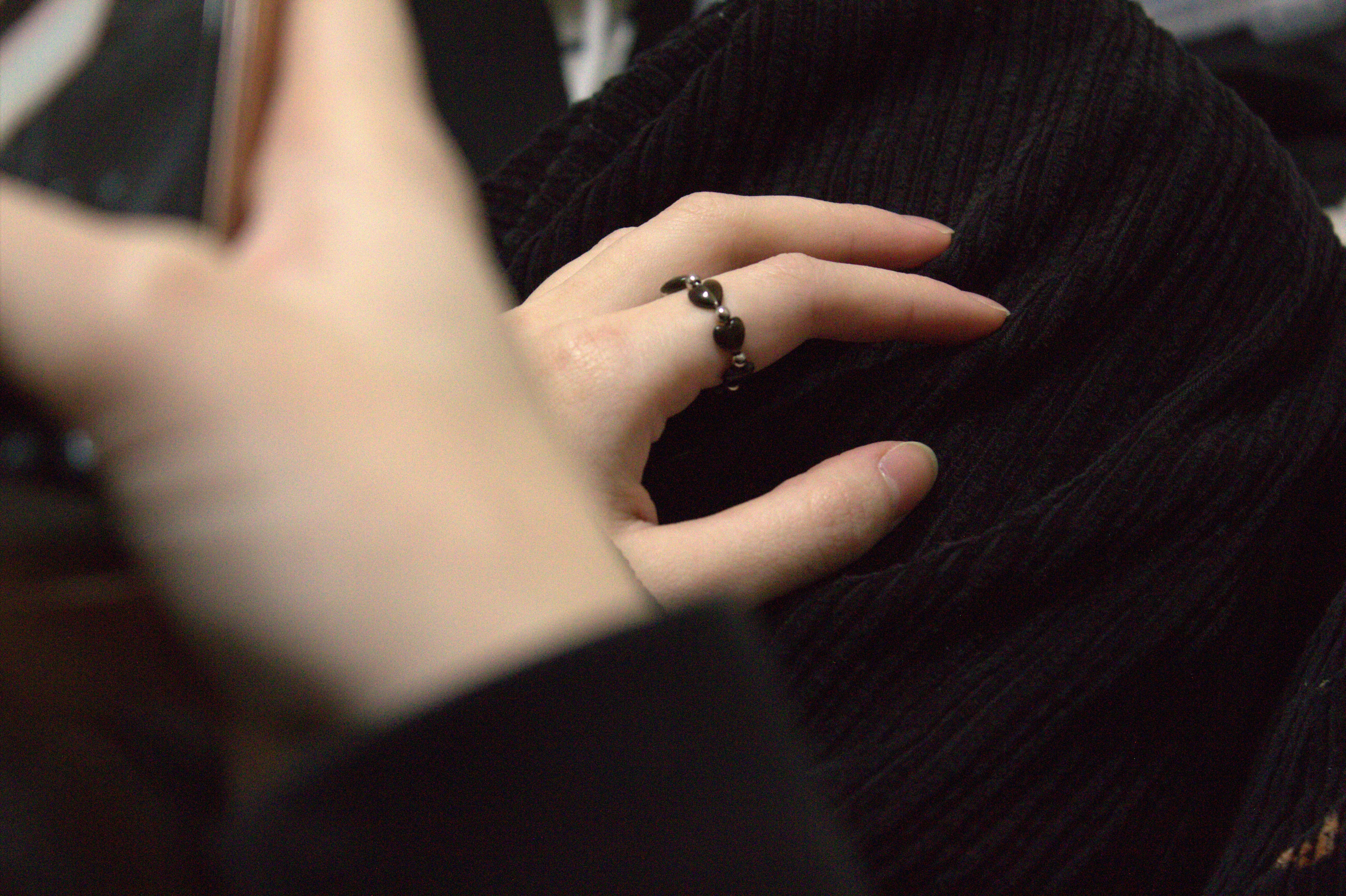 角度によって表情を変え、指先にさりげない高級感を与えます。