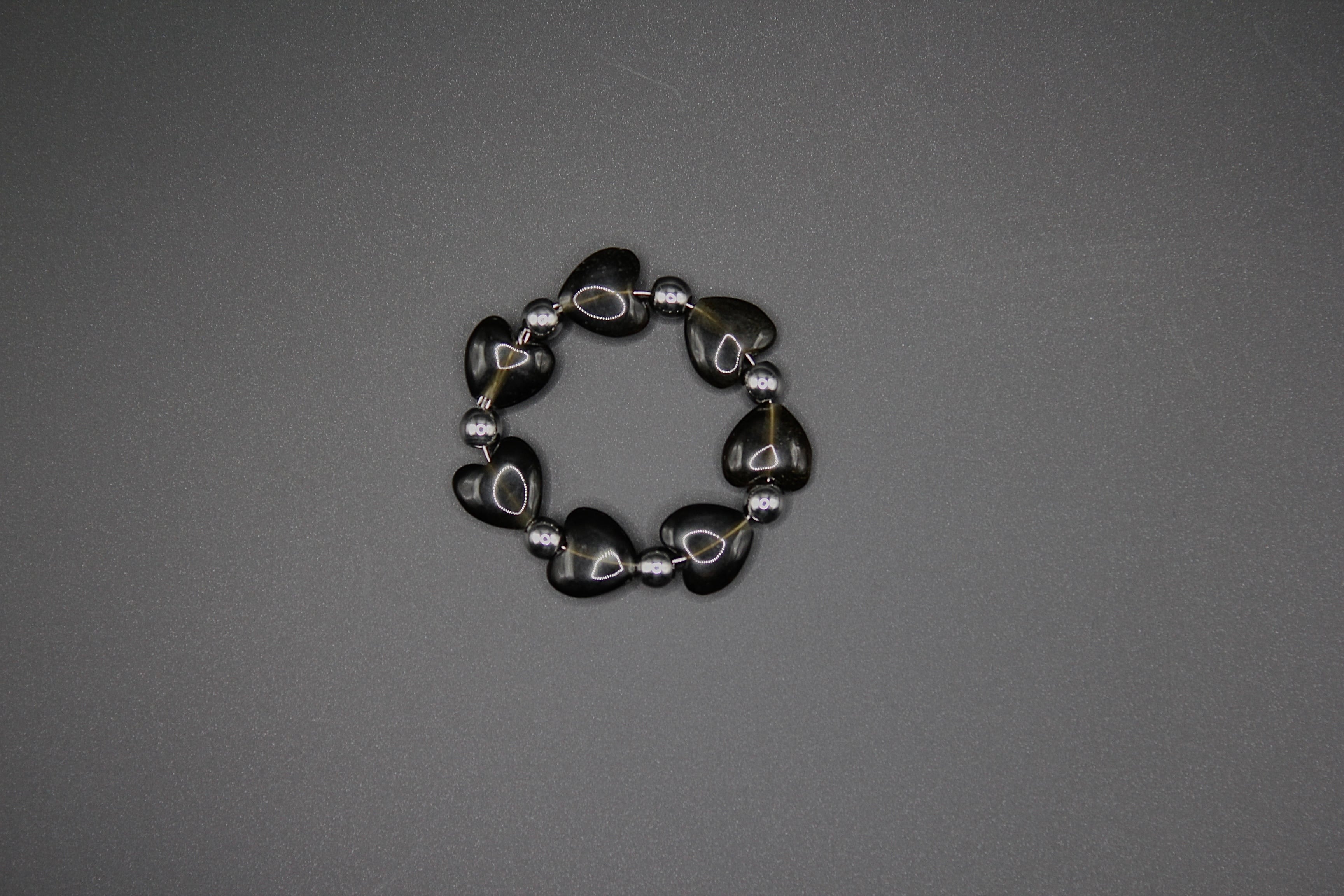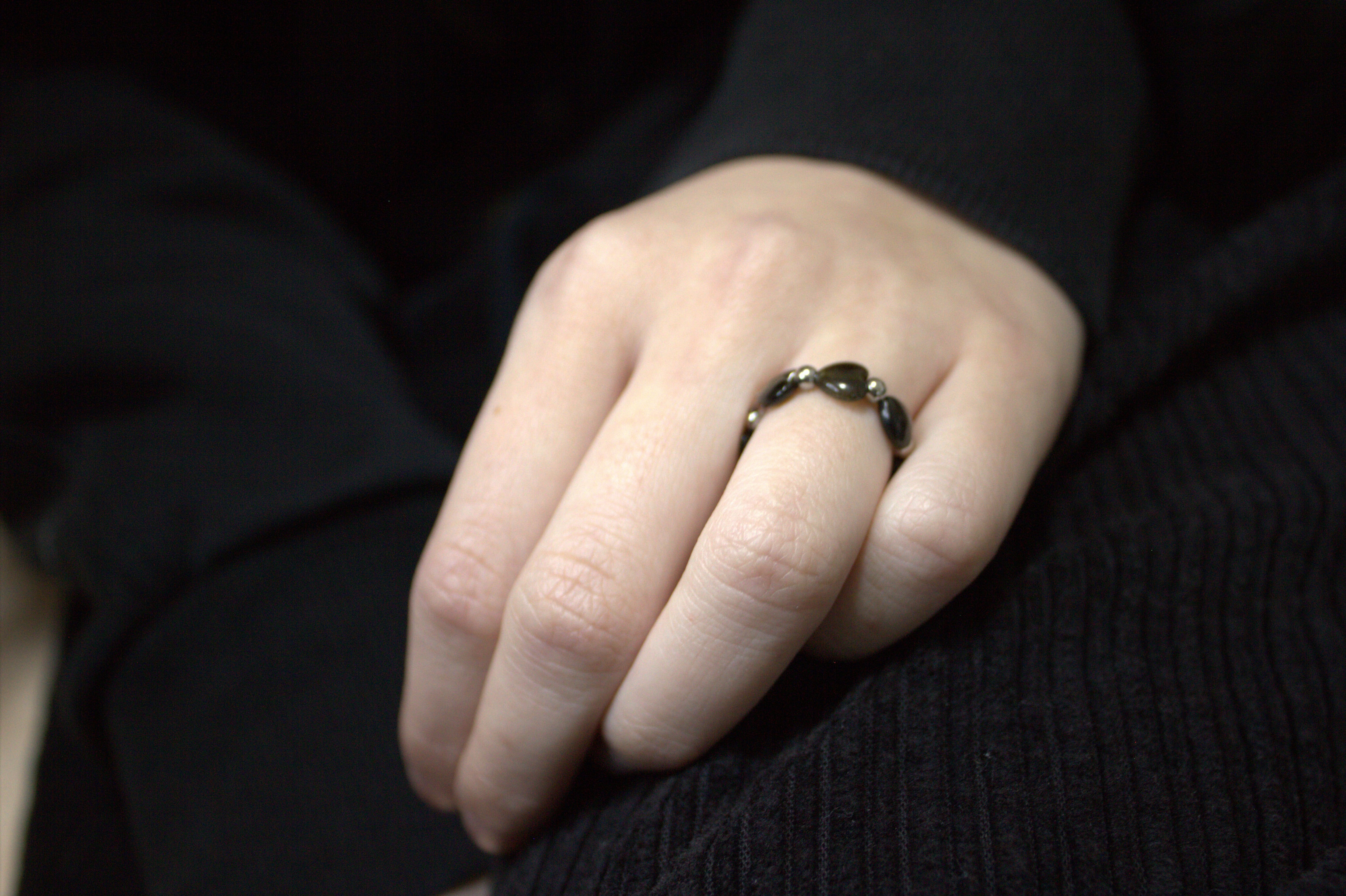 「ゴールデンオブシディアン(黒曜石)」を上品なハートカットに仕上げたリング。