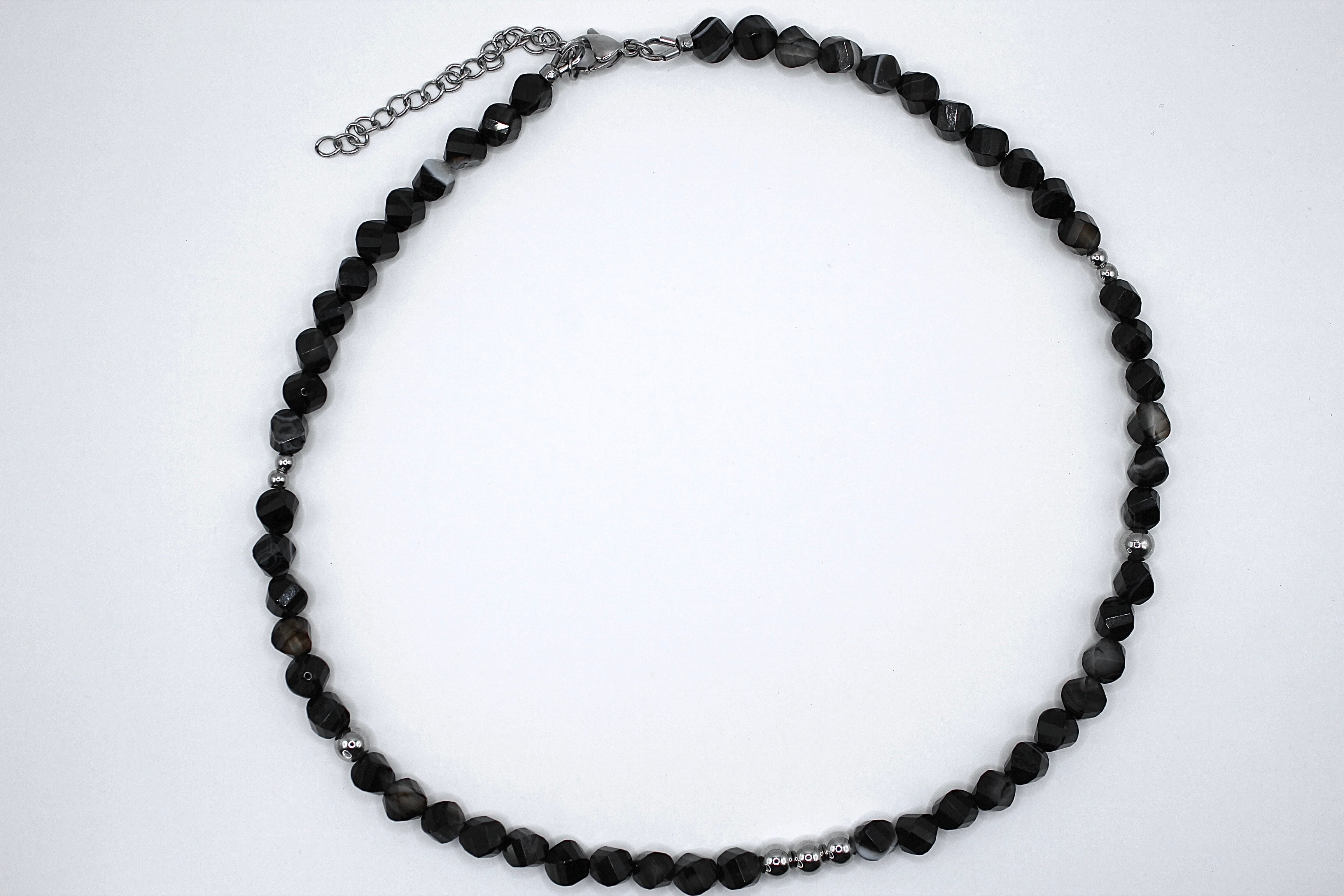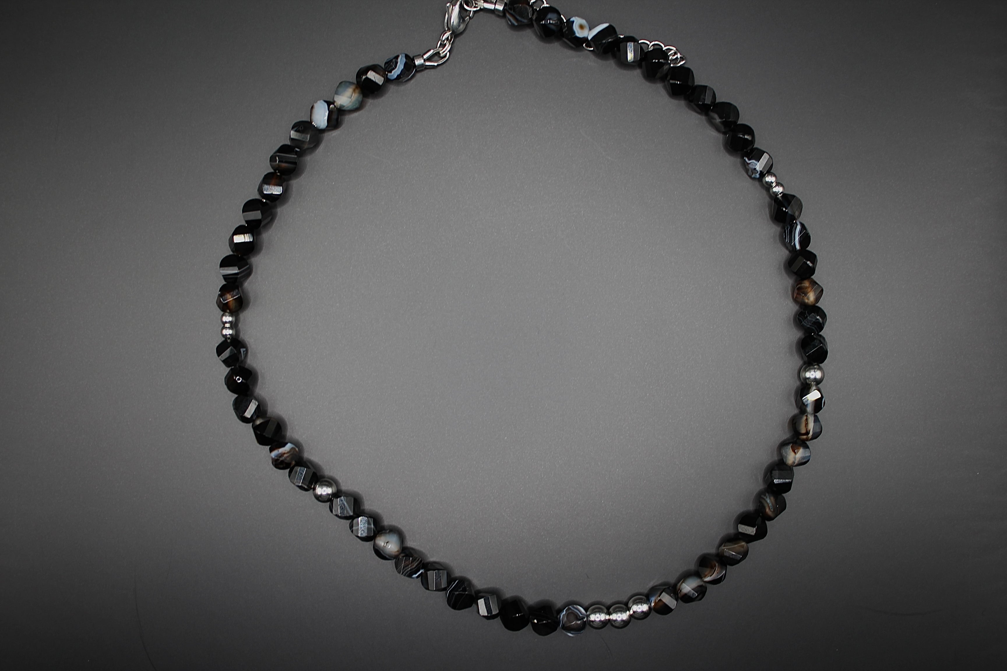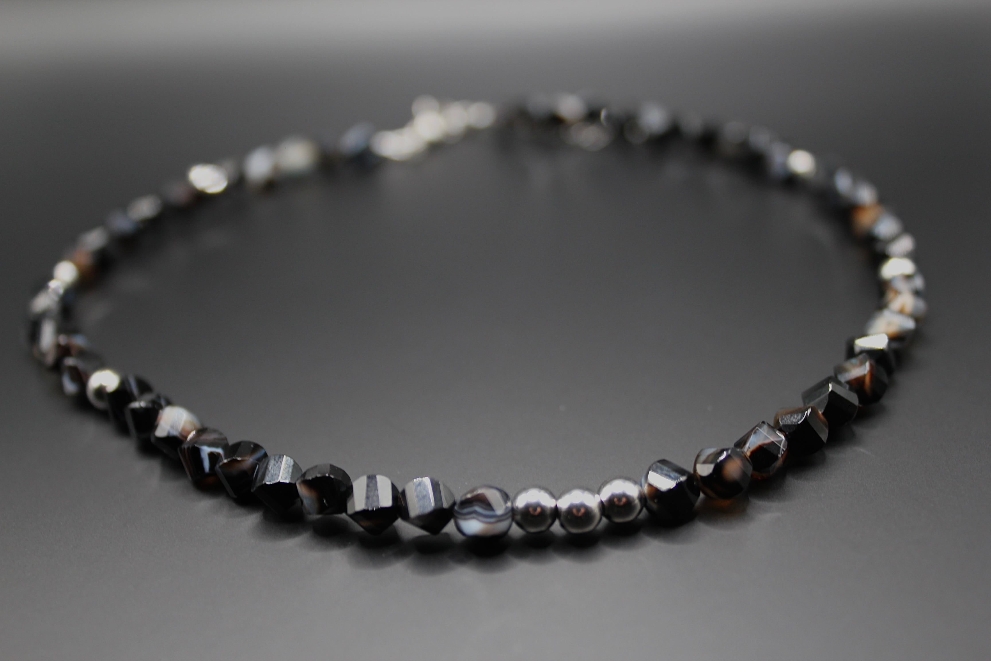 黒や白、ブラウンなどが層状に重なり合う、美しい縞模様が特徴の天然石「ストライプオニキス(縞瑪瑙)」を