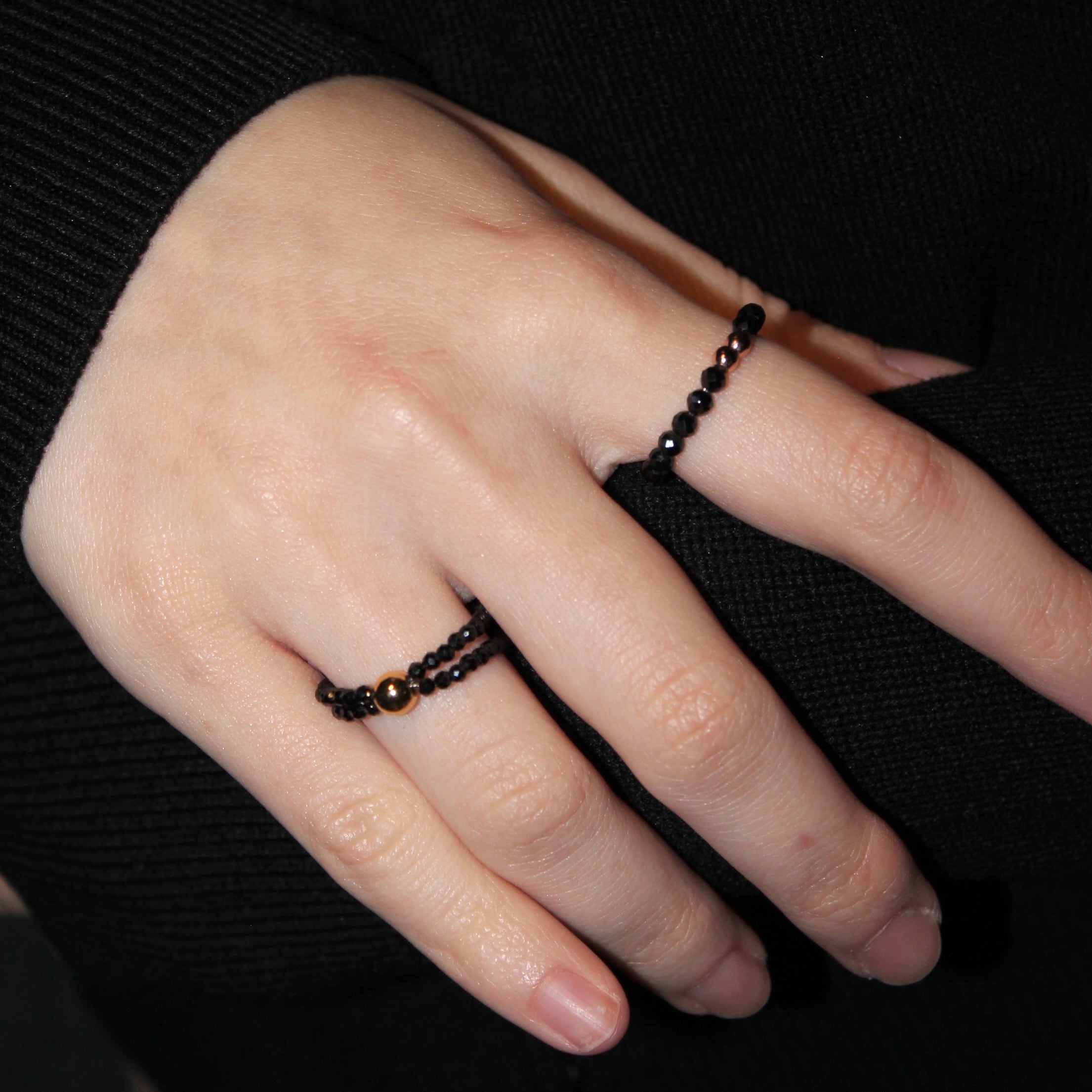 ブラックスピネルを贅沢に使用した2連デザイン。