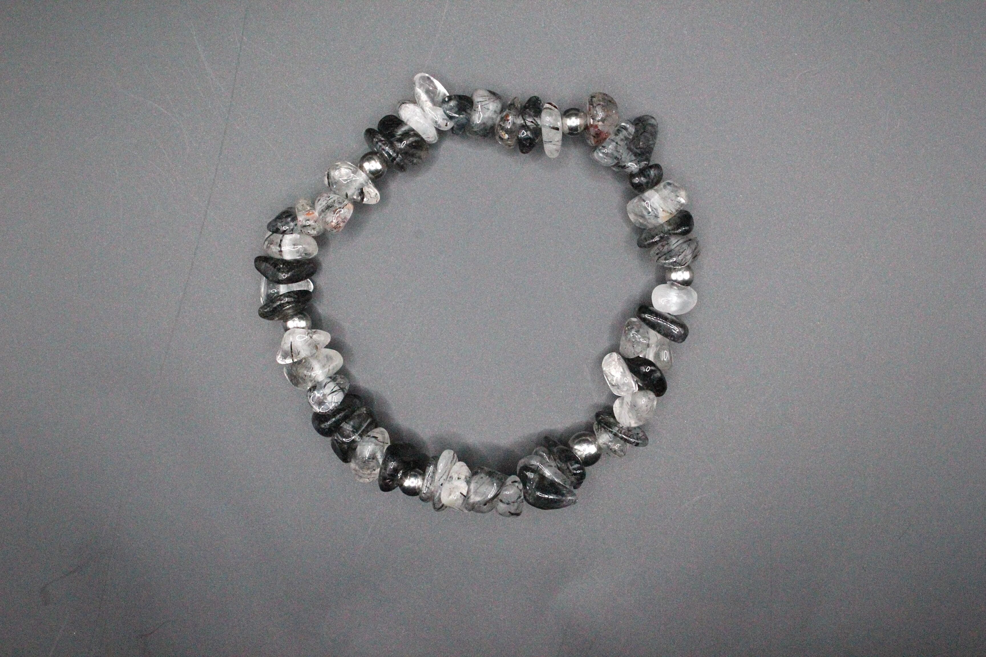 **ブラックルチルクォーツ(黒針水晶)**を自然な風合いを活かした、さざれ石デザインで仕上げたブレスレット。